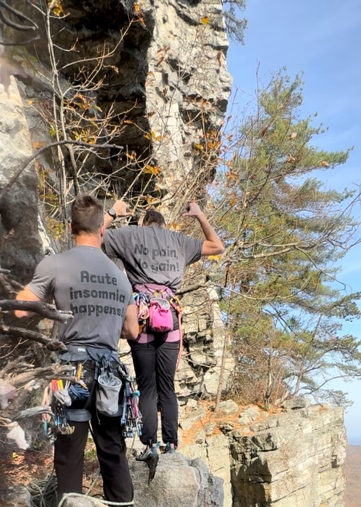 CBT-I: No Pain, No Gain.CBT-I tee-shirts on "The Gunks."