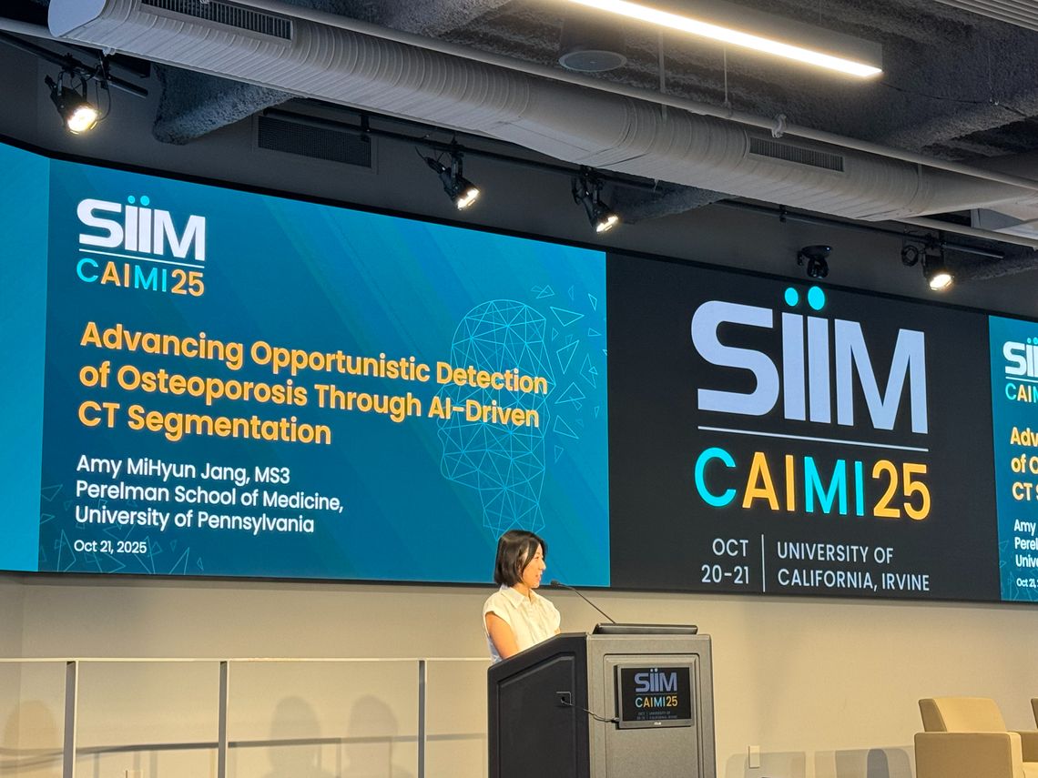 Amy MiHyun Jang (MS3) presented “Advancing Opportunistic Detection of Osteoporosis Through AI-Driven CT Segmentation” at the Society for Imaging Informatics in Medicine Conference On Artificial Intelligence In Medical Imaging (SIIM-CAIMI)