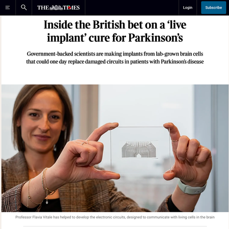 Inside the British bet on a ‘live implant’ cure for Parkinson’s - The Times (UK), 10/2025