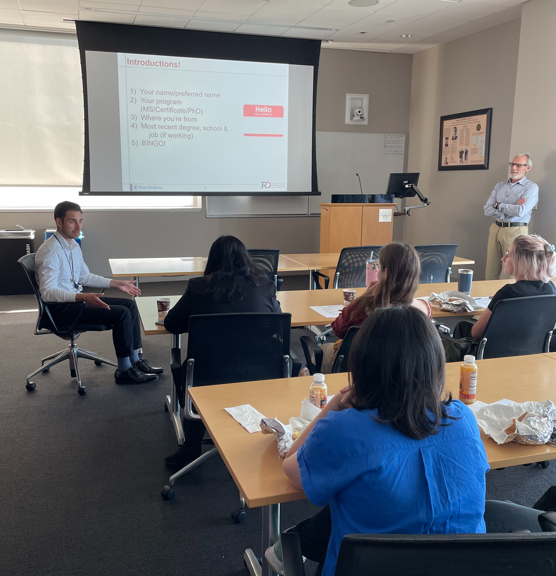 New Student Orientation, held each year prior to the start of classes, helps students to make connections and prepares them for success in the program. Sessions include introductions to Department of Radiation Oncology leaders and medical physics faculty, staff, and residents; a student-organized social event and medical physics networking event; overviews of graduate student services and resources at Penn; and a cross-cultural communication workshop to help students evoke global thinking and empathy in their communication styles.