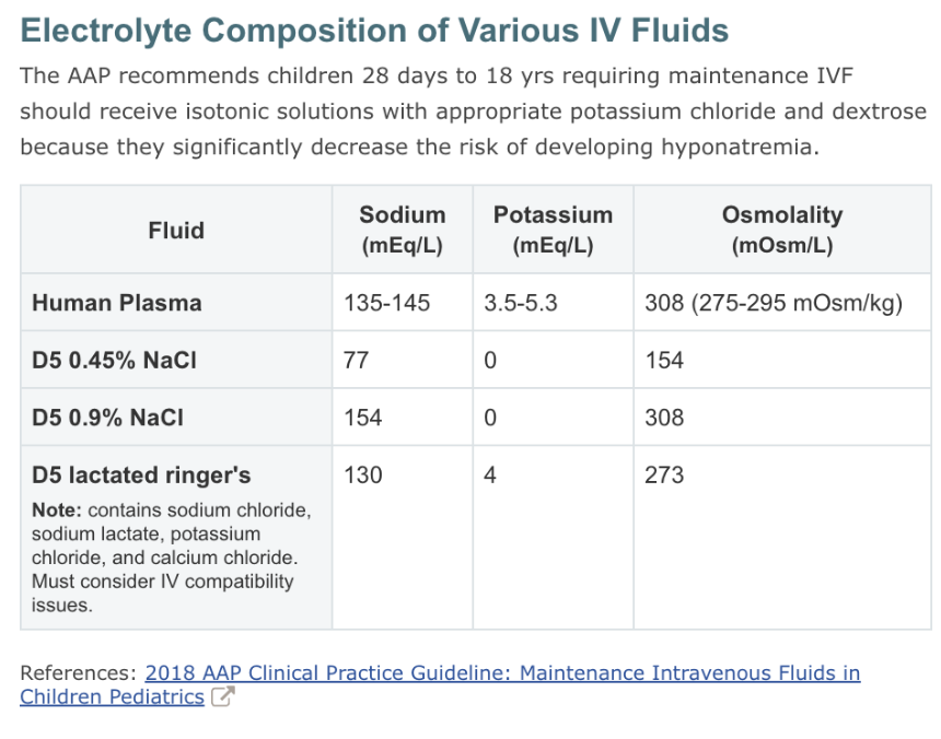 - You will commonly see/hear “D5 normal” (Dextrose 5% with 0.9% normal saline”