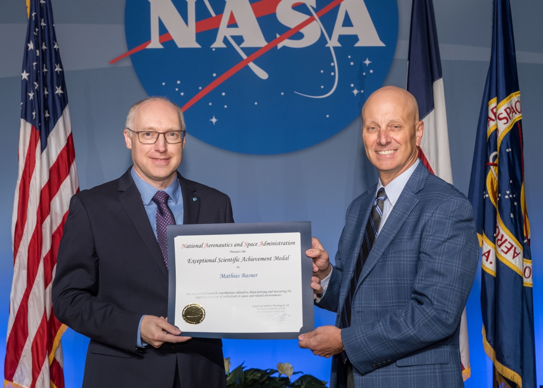 In September 2025, Mathias Basner, MD, PhD, MScEpi, the Director of the Unit for Experimental Psychiatry, was awarded the Exceptional Scientific Achievement Medal by the National Aeronautics and Space Administration (NASA). This prestigious agency award was established in 1961 to recognize individual or team efforts that lead to a key scientific discovery, a fundamental contribution to a scientific field, or a significant enhancement of scientific understanding. Former recipients include multiple Nobel laureates.